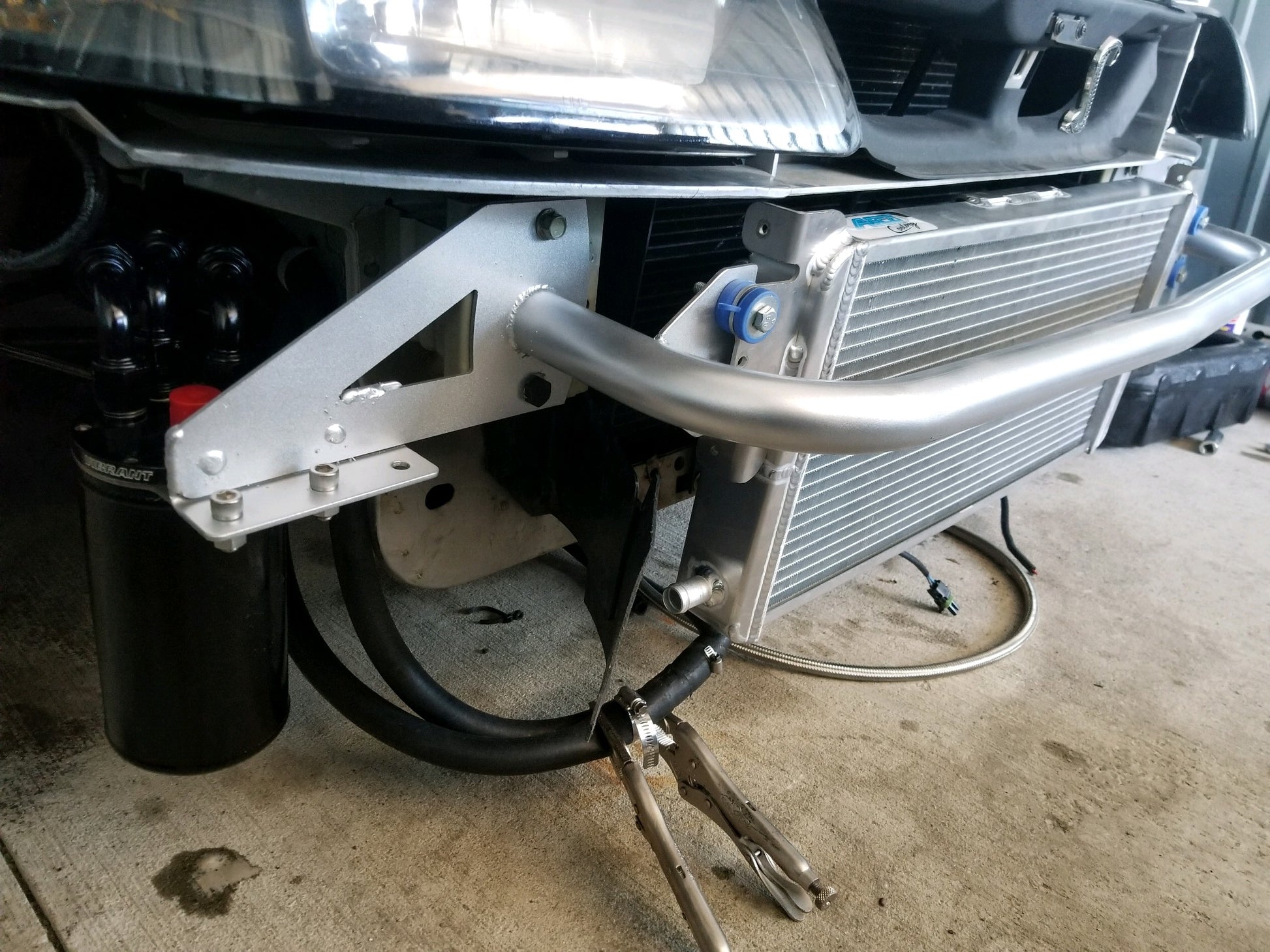 Our GT-500 front bumper has special mounting brackets that can be used to mount the a AFCO, Department of Boost, VMP and Lightning Force Performance heat exchangers. This a direct bolt on for all 99-04 mustangs. All of these bumpers use the HD 1.5" main tubing. Bumper cover may require slight notching to clear the bottom of the heat exchanger in non Afco installs.